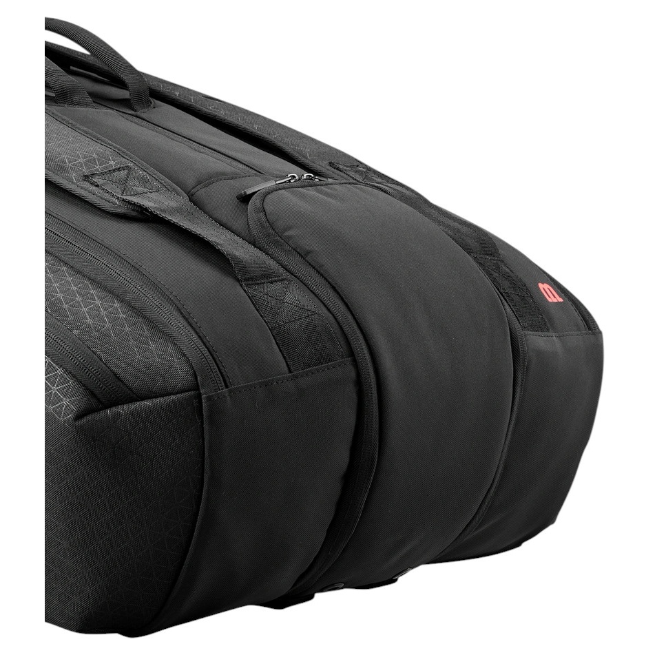 • gefertigt aus hochwertigem, strapazierfähigem Material mit einem dezenten Dreiecksmuster, das an das Clash-Design angelehnt ist, verfügt diese Tasche über drei Hauptfächer für bis zu 15 Schläger, davon zwei mit Thermoguard-Isolierung, um die Schläger vor extremen Temperaturen zu schützen.