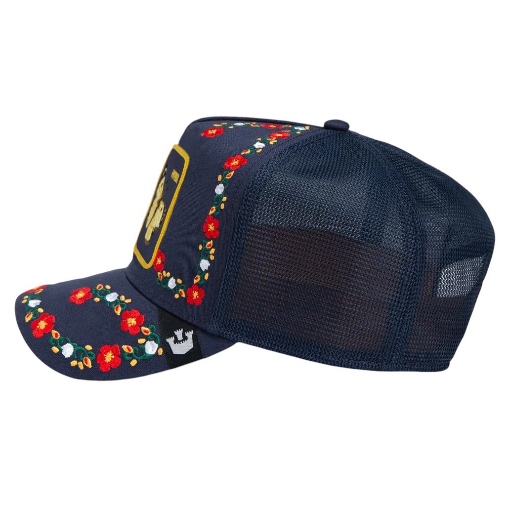 • der navy-blaue Farbton mit floralem Stickmuster gibt dir den Extra-Hyper-Boost für deinen Style!