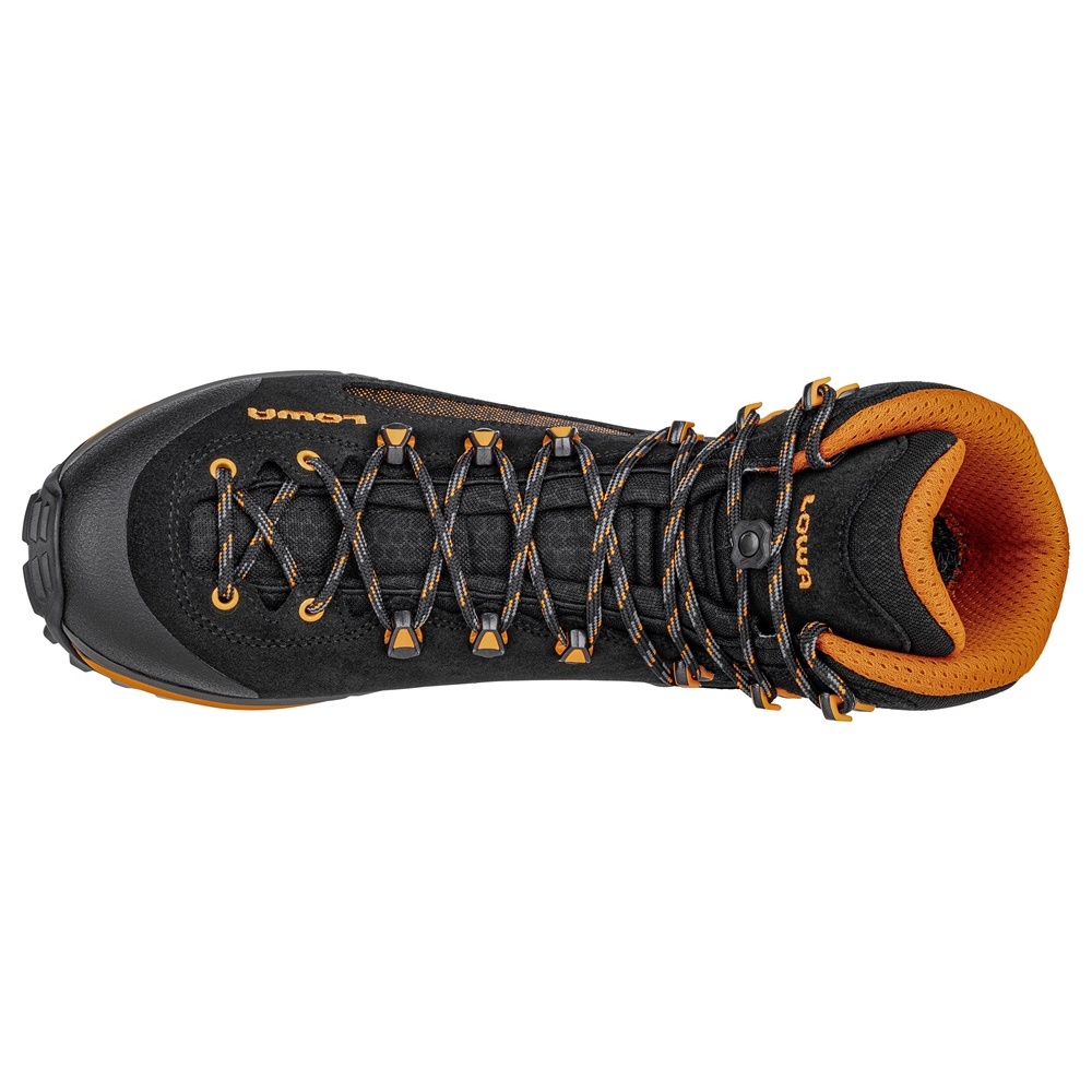 Lowa Wanderschuhe Corvara Mid GTX (Trekking, Veloursleder/Textil, wassderdicht) schwarz/orange Herren