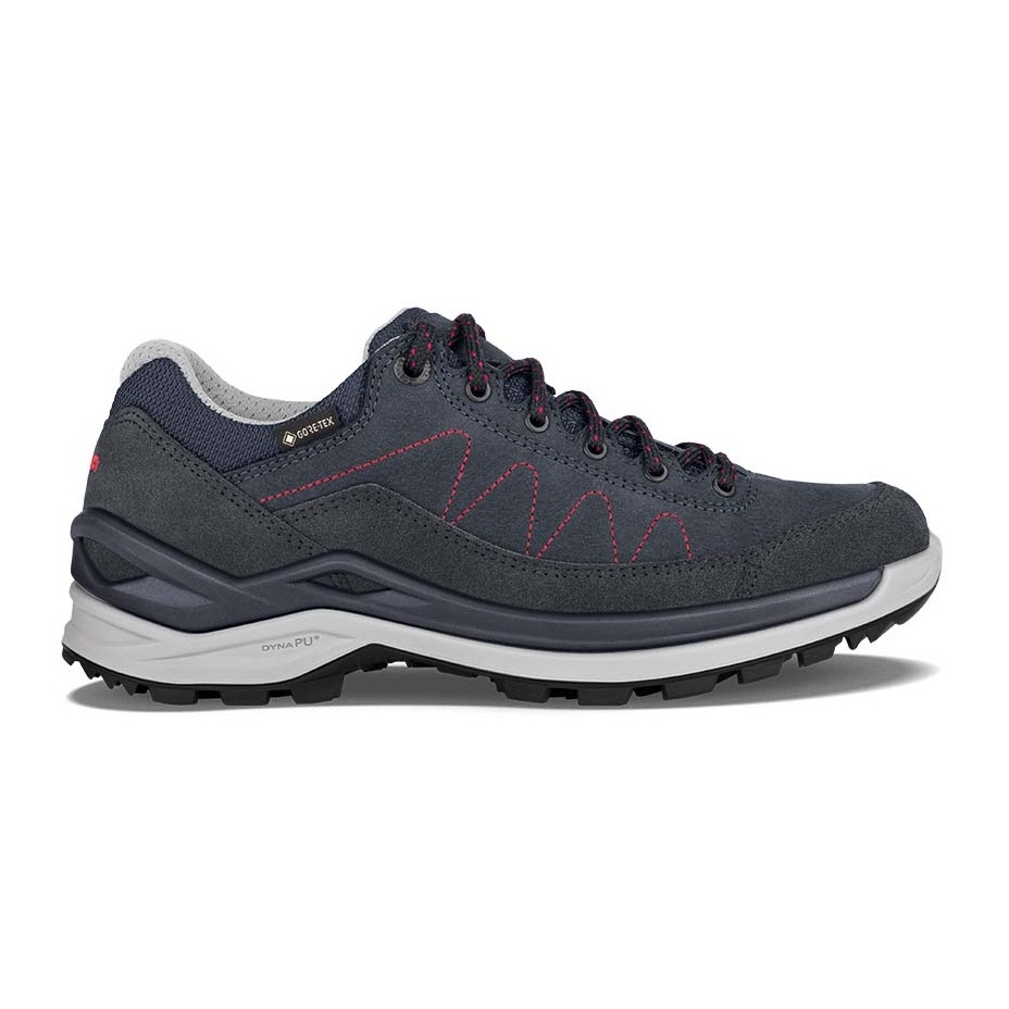 Lowa Wander-Travelschuhe Toro Pro Low GTX (Velours-Nubukleder, wasserdicht) navyblau/rot Damen