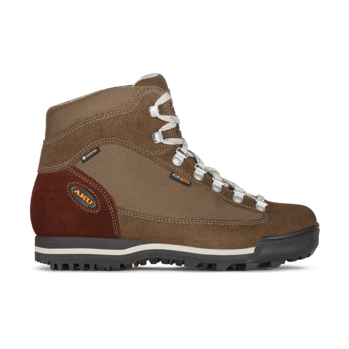 Labortests bestätigen, dass das mit dem exklusiven AKU-System AIR 8000® gefertigte Obermaterial eine bis zu 11,5 Mal höhere Atmungsaktivität als normale Standards mit GORE-TEX® bietet. Auch nach 20 Jahren bleibt das AKU-System AIR 8000® eine der modernsten Technologien für eine hervorragende Atmungsaktivität von Bergschuhen.