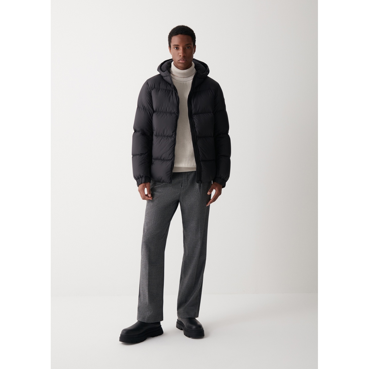 • Herrenjacke mit fester Kapuze aus mattem Ripstop-Gewebe mit weichem Griff und wasserabweisender Behandlung