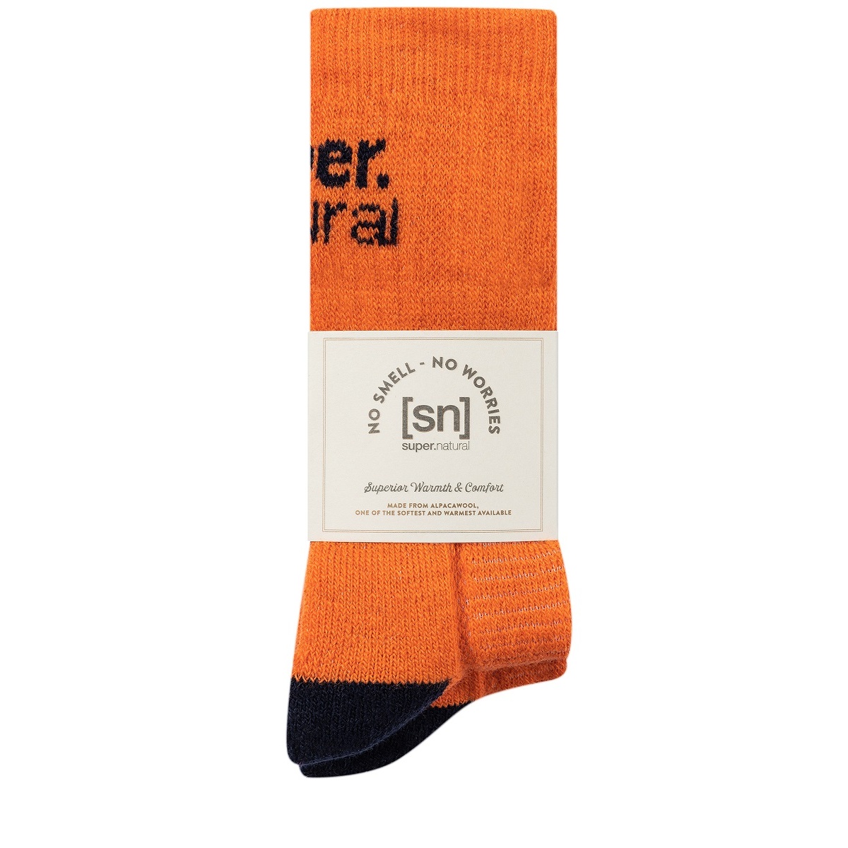 super natural Tagessocke Crew Cosy - Alpakawoll-Mix - orange/ozeanblau - 2 Paar