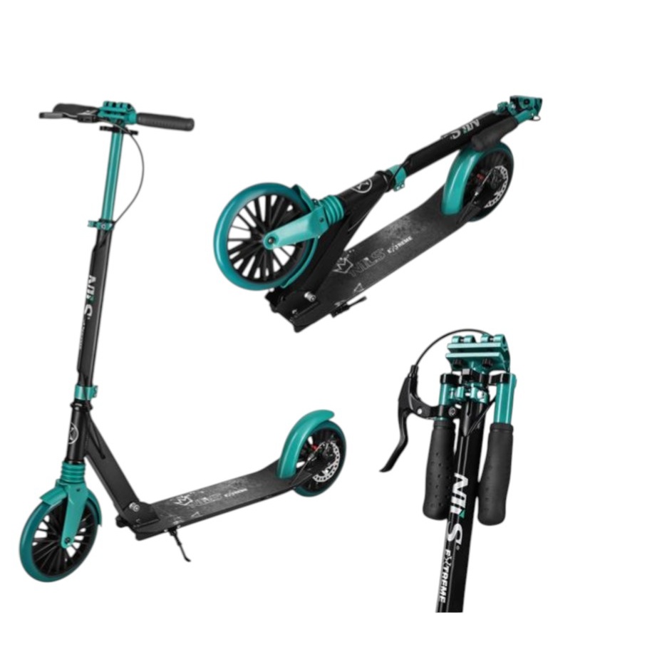 Nils Extreme Scooter HM181T mit Bremse (aufklappbarer Roller, Kugellager: ABEC 9) schwarz/tealgrün
