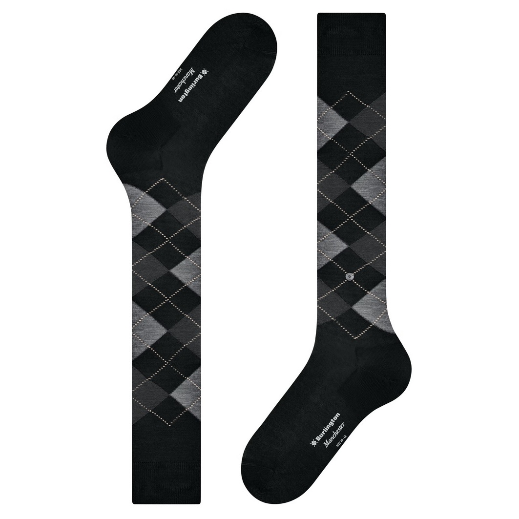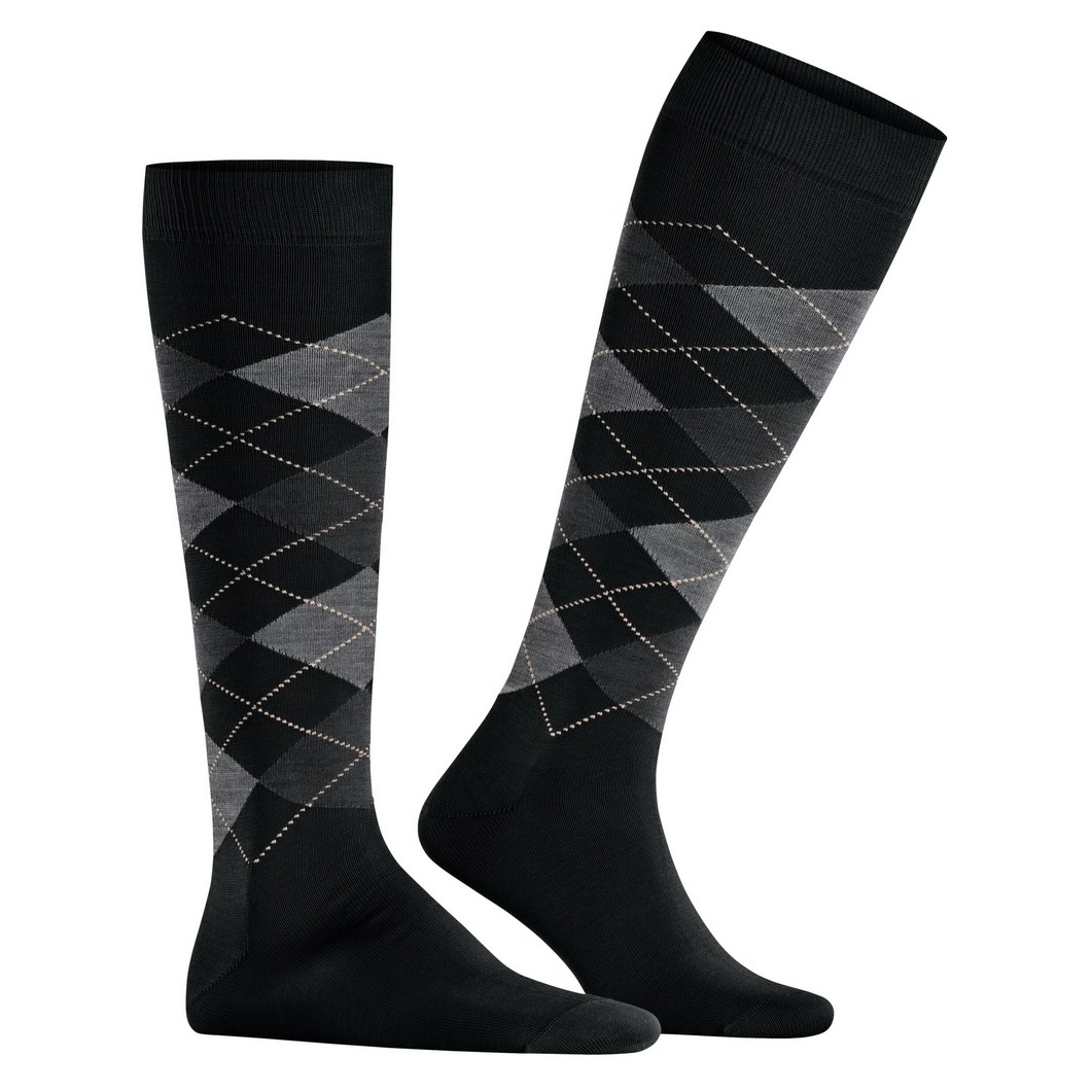 Preisalarm für Burlington Kniestrümpfe Manchester (Argyle-Muster) schwarz Herren - 1 Paar