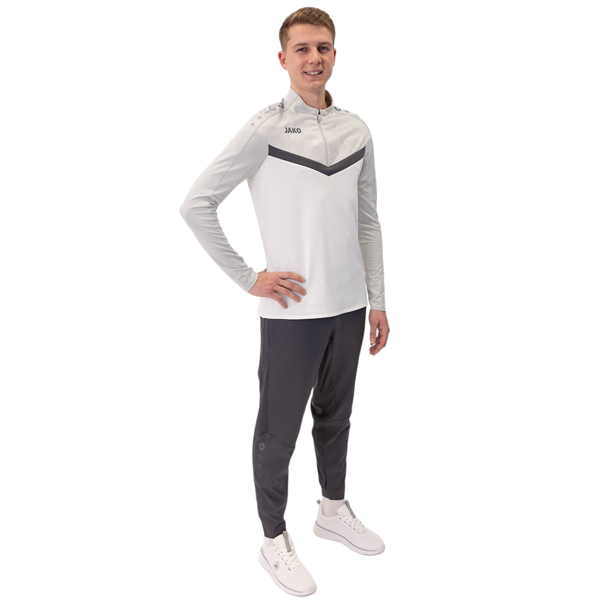 JAKO Langarmshirt Ziptop Iconic (angenehmer Tragekomfort) weiss/grau/anthrazitgrau Herren