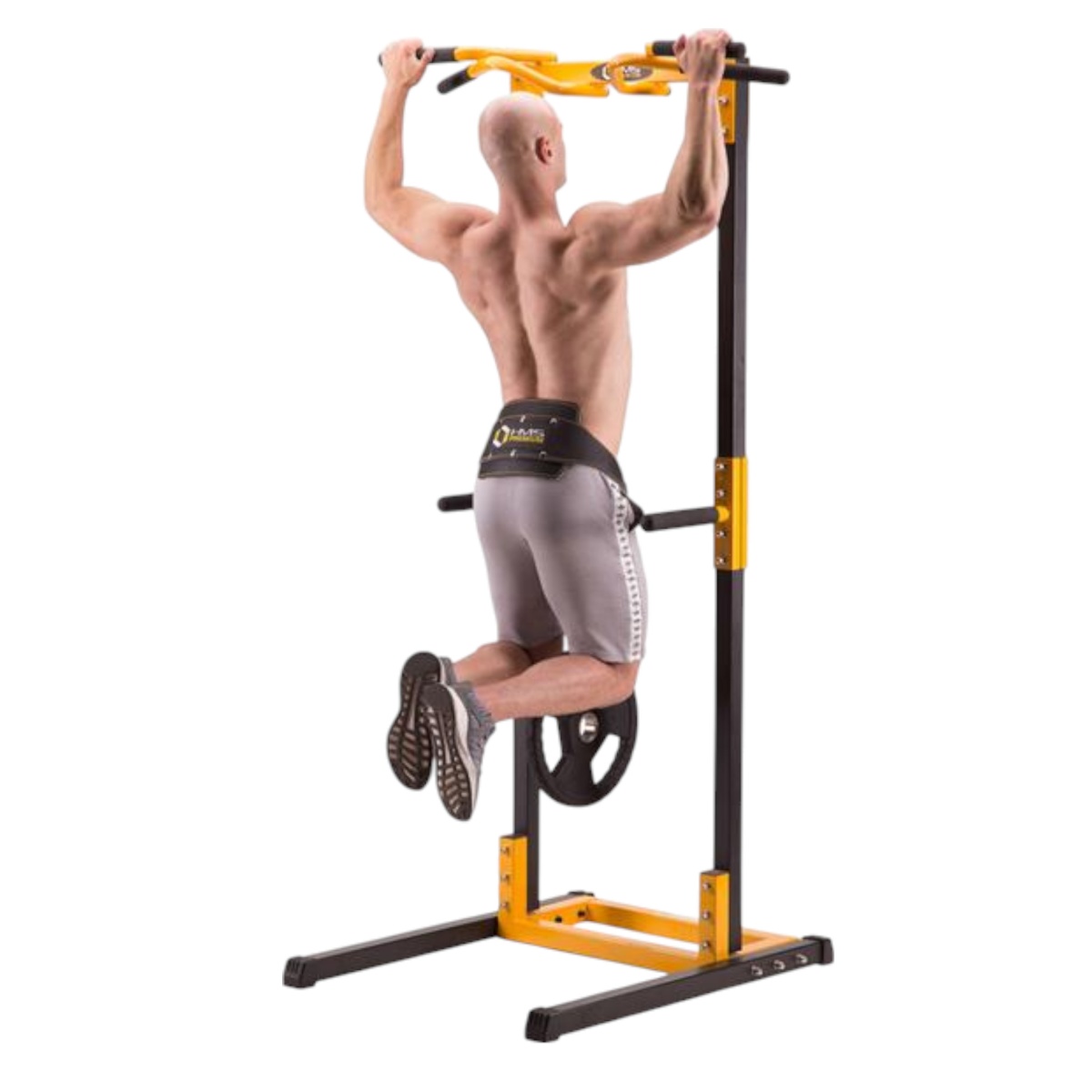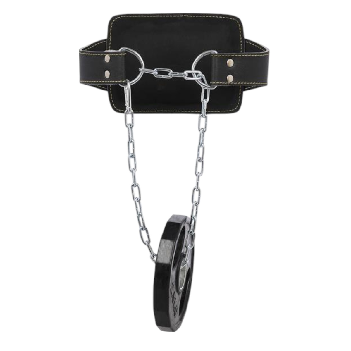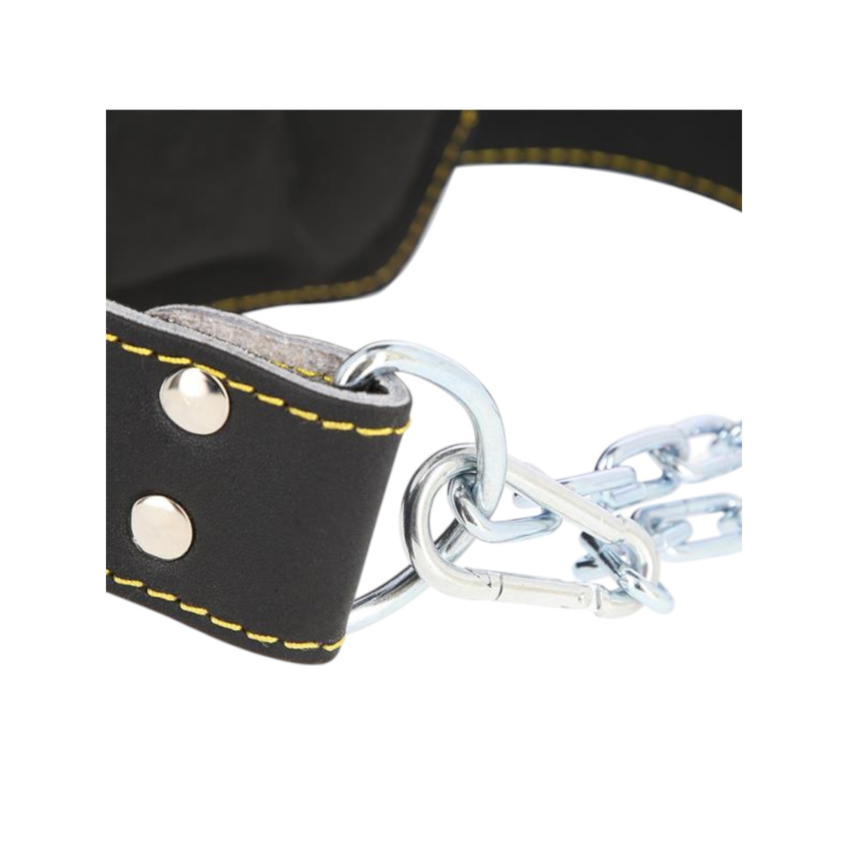 • die Kette aus Stahl ist am Gewichthebergürtel befestigt.
