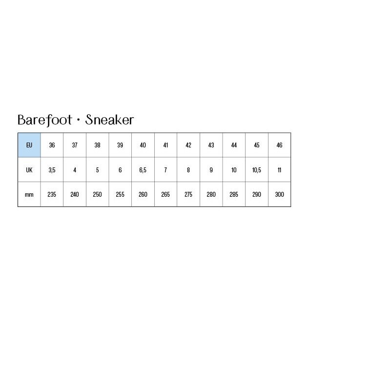 • jedes Barefoot-Model wird mit 2 Paar Einlegesohlen (verschiedene Stärken) geliefert