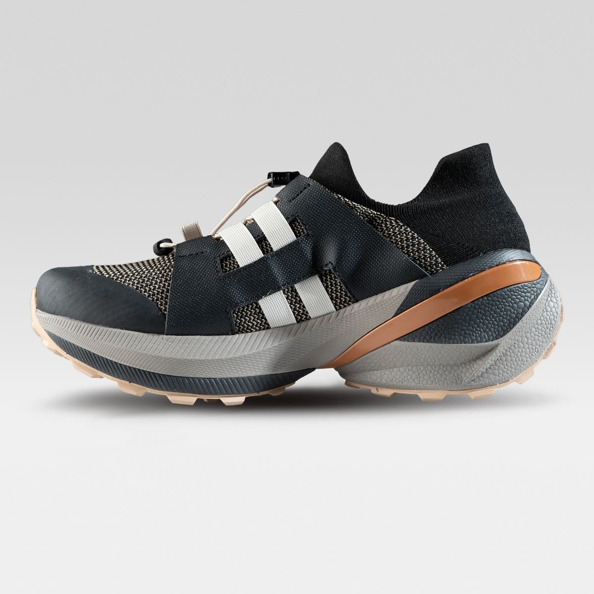 • sein weiches, sockenähnliches Obermaterial aus Merinowolle passt sich der natürlichen Form des Fußes an, bietet Halt und reduziert Ermüdung