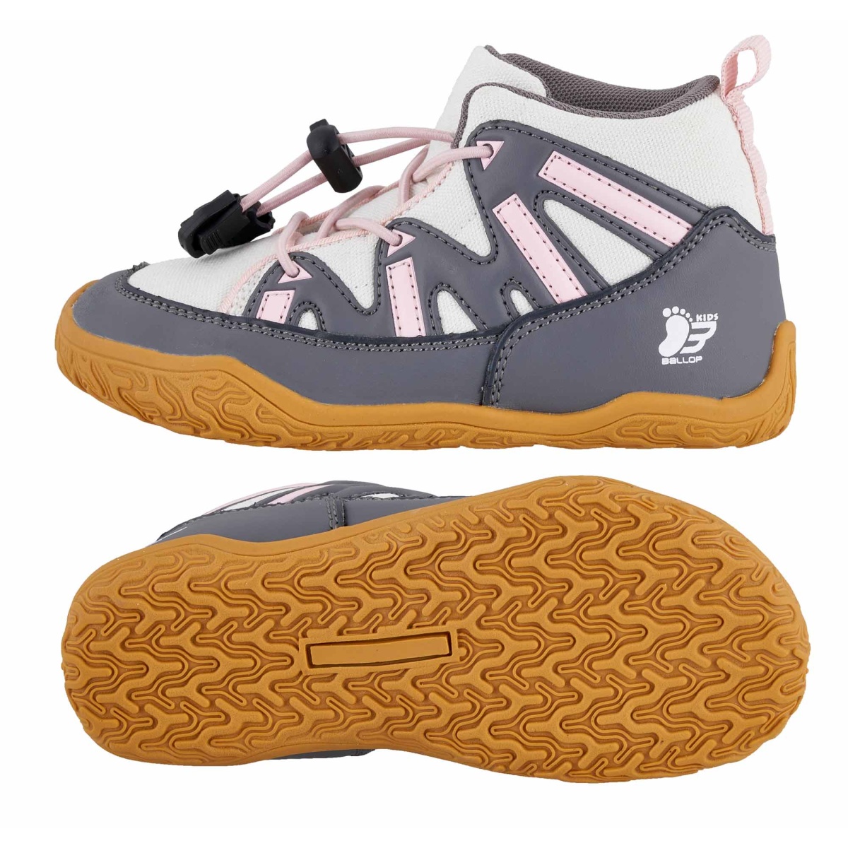 Ballop Barfussschuhe Sneaker Intense (flexible Sohle, atmungsaktiv) grau/pink Kinder