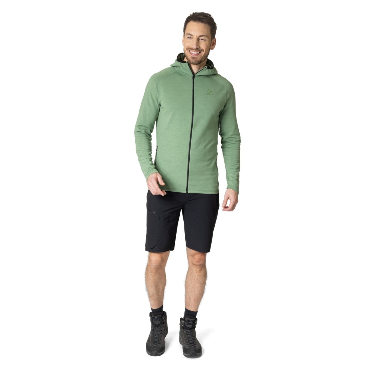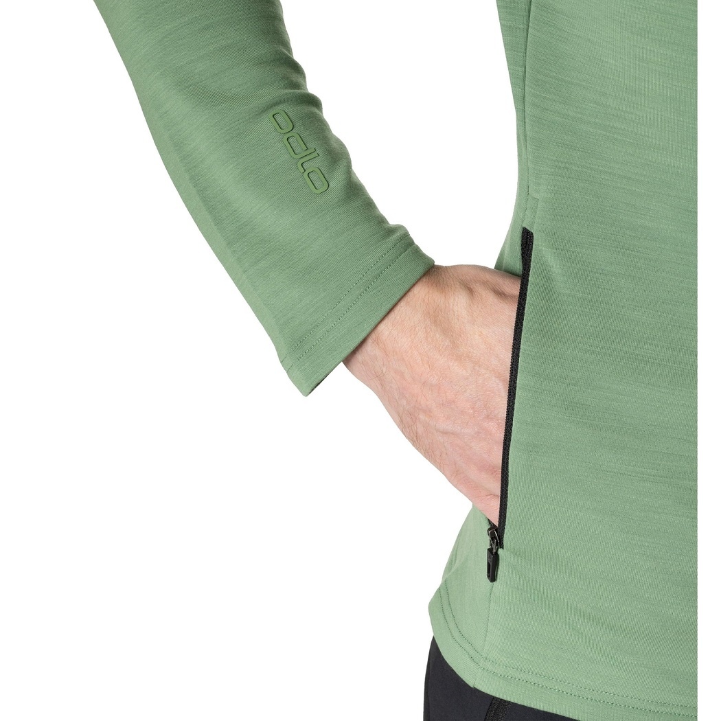 Odlo Fleecejacke Ascent Performance Wool Warm Mid Layer mit Kapuze (Merinowolle) lodengrün Herren