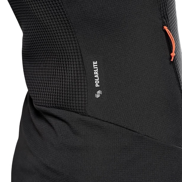 • das vielseitige, technische Polarlite-Stretch-Fleece kommt in mittlerer Stärke und kombiniert zwei Polarlite-Materialien: Das Hauptmaterial besteht zu 100 Prozent aus recyceltem Polarlite, während die Polarlite-Einsätze an der Kapuze, dem Brustbereich und den Armen 94 Prozent Polyester (davon 54 Prozent recycelt) sowie sechs Prozent Elasthan beinhalten