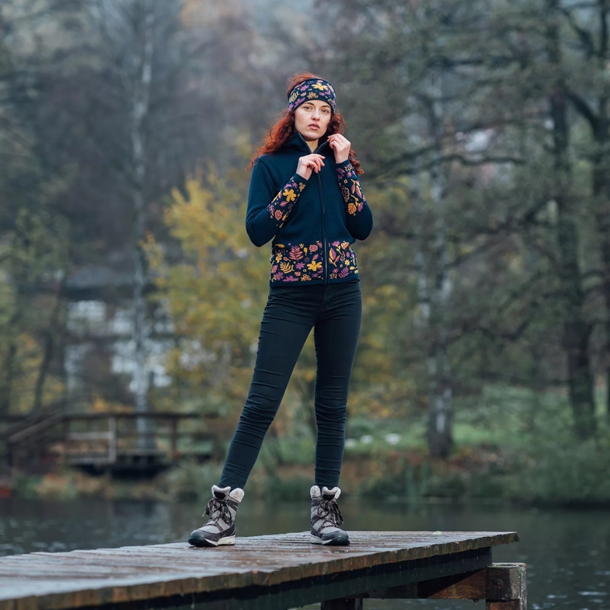 • das breitere Damenstirnband mit Blumenmuster passt perfekt zu Pullover 5049 oder 5050.