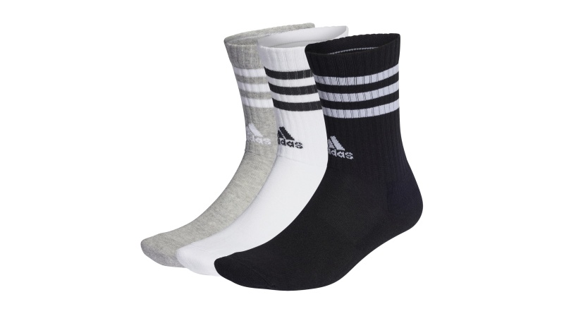 adidas Sportsocken Crew 3-Streifen Cushioned #23 grau/weiss/schwarz - 3 Paar