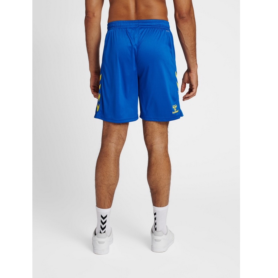 hummel Sporthose hmlCORE XK Poly Shorts (robuster Doppelstrick, ohne Seitentaschen) kurz blau/gelb Herren