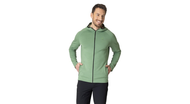 Odlo Fleecejacke Ascent Performance Wool Warm Mid Layer mit Kapuze (Merinowolle) lodengrün Herren