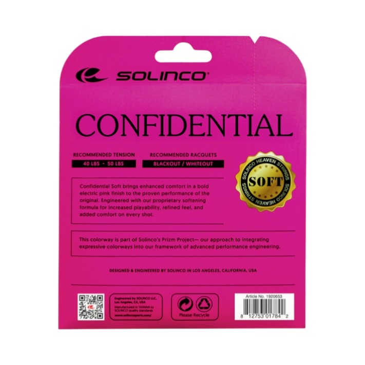 Solinco Tennissaite Confidential Soft (Haltbarkeit+Spielgefühl) pink 200m Rolle