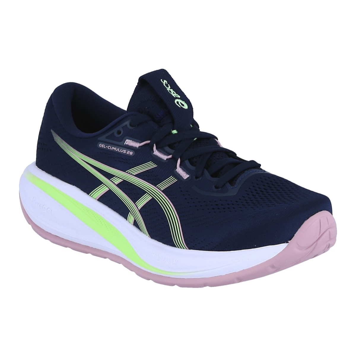 Asics Laufschuhe Gel Cumulus 28 (Dämpfung) dunkelblau/lime Damen