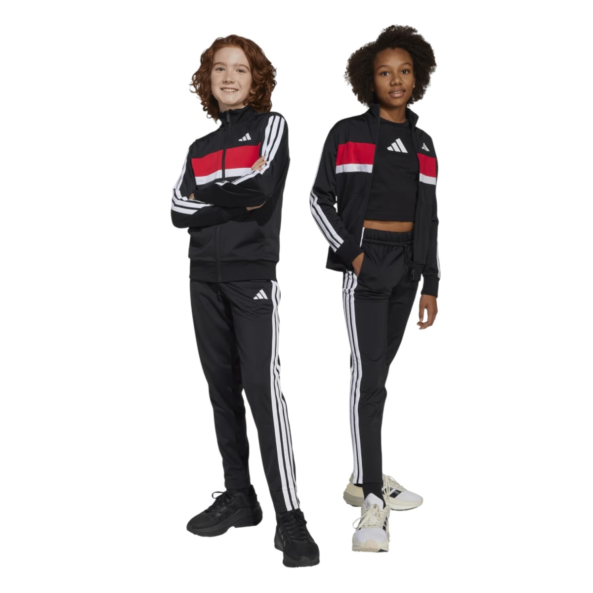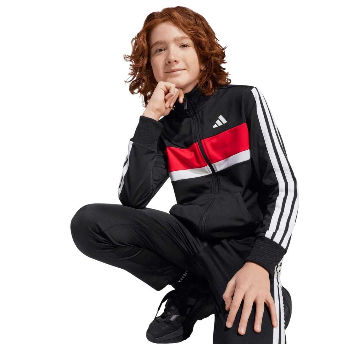 adidas Trainingsanzug Seasonal Essentials Tiberio 3-Streifen schwarz/weiss/rot Kinder