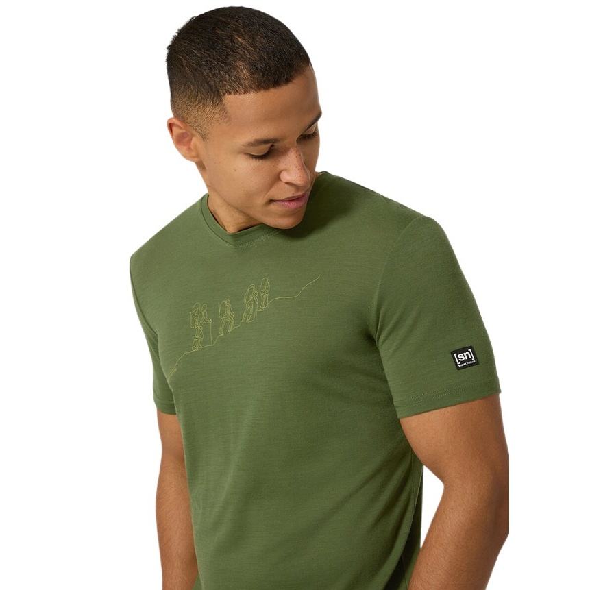 super natural Wander-/Freizeit Tshirt Graphic Hiking - Merinowollmix - olivegrün Herren