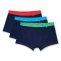 • drei dunkelblaue Boxershorts, dazu knallige Bundfarben in Grün, Blau und Rot – ein echtes Statement unter der Gürtellinie.