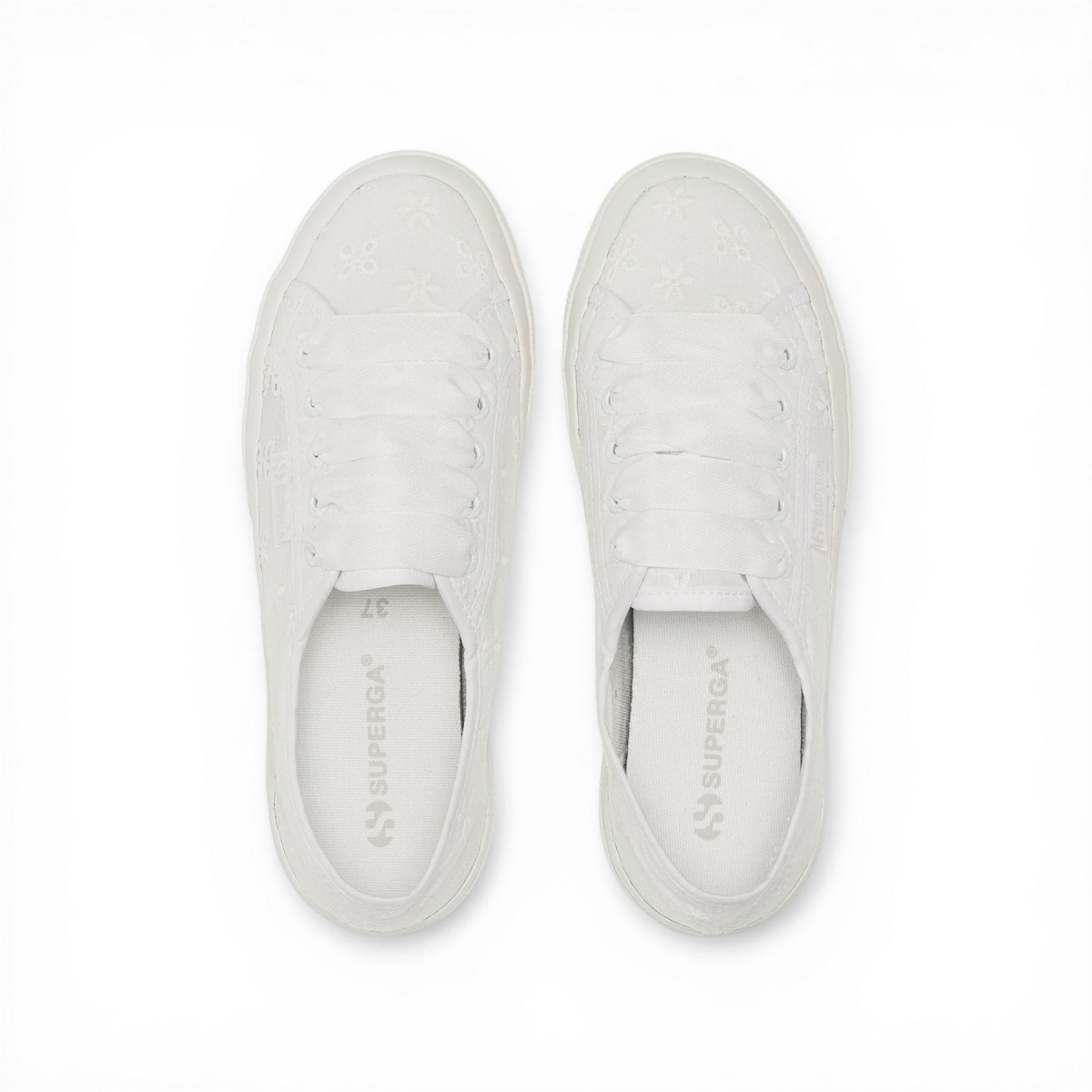 • der Sneaker bekräftigt die DNA des Superga 2750, eine klassische und leichte Silhouette mit vulkanisierter Gummisohle und Obermaterial aus Sangallo-Baumwolle mit Organza-Innenfutter.