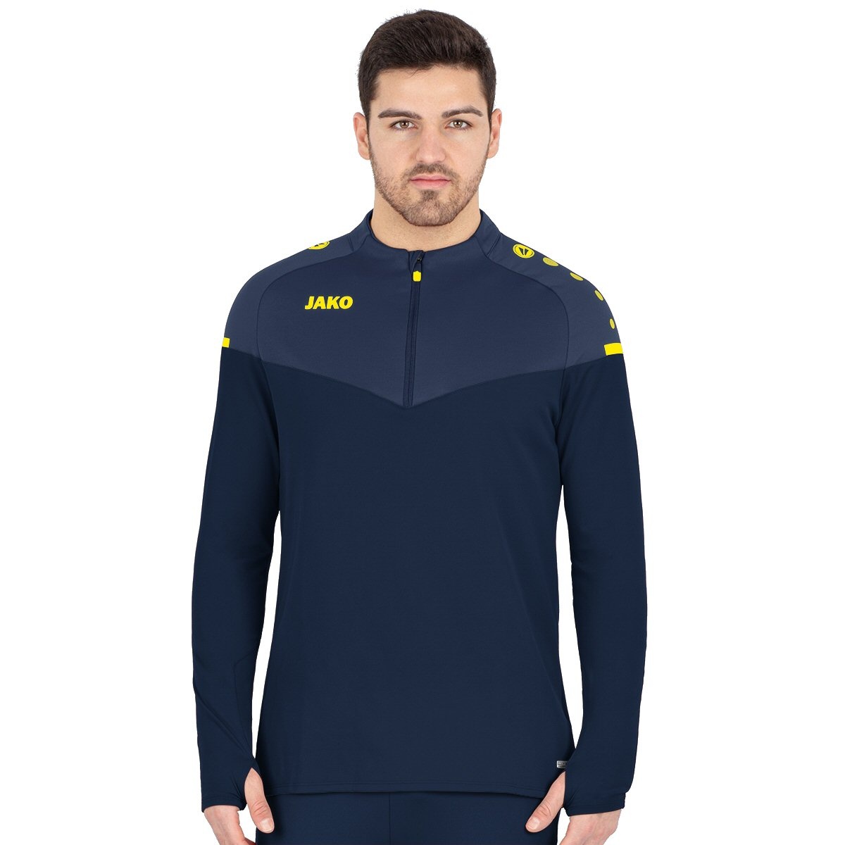 JAKO Sport-Langarmshirt Ziptop Champ 2.0 (100% Polyester) marine/blau/gelb Herren