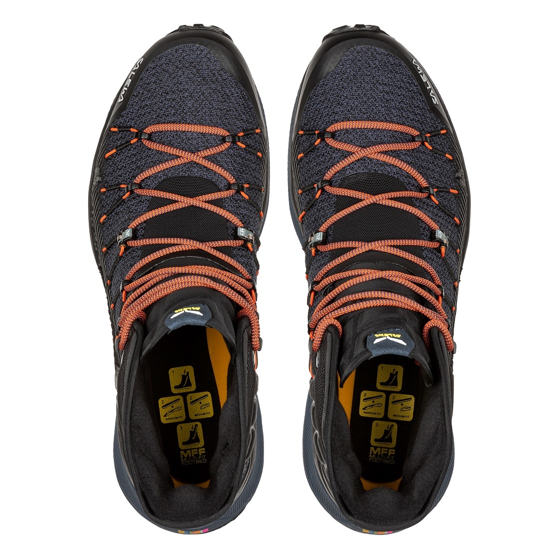 • die spezielle 3D-Schnürung mit integrierten Klemmösen sorgt dafür, dass in zwei verschiedenen Zonen automatisch die richtige Schnürspannung aufrechterhalten bleibt, während du mit dem anpassbaren Multi Fit Footbed Plus (MFF+) zwischen verschiedenen Einlagen wählen und so das Schuhvolumen und den Sitz abstimmen kannst
