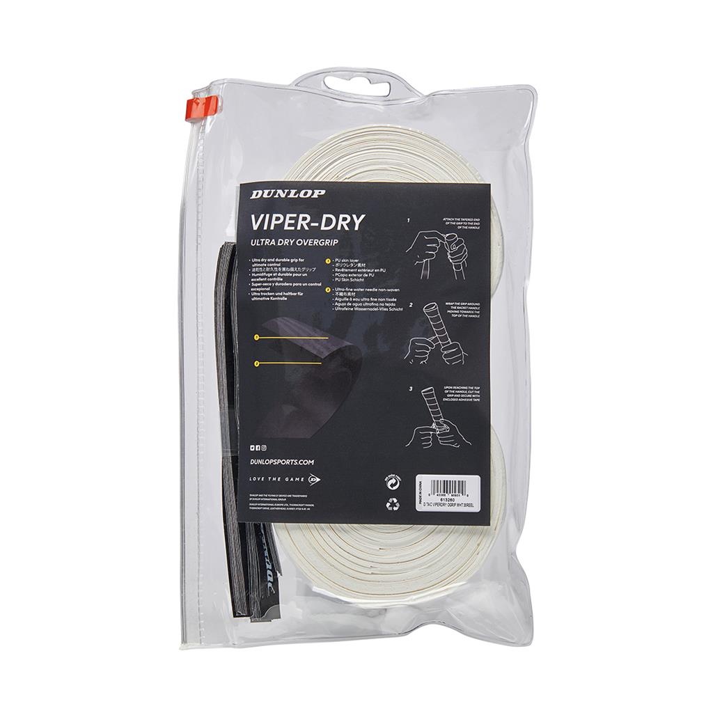 Dunlop Overgrip Viper Dry 0.6mm (ultra trocken und haltbar) weiss - 30 Stück/Zip-Beutel