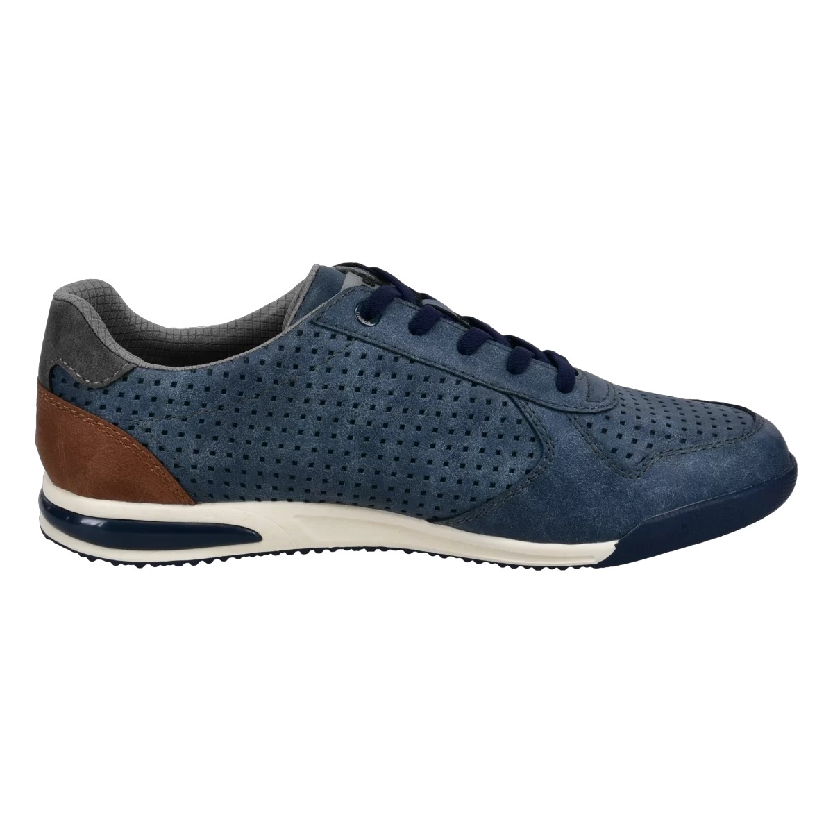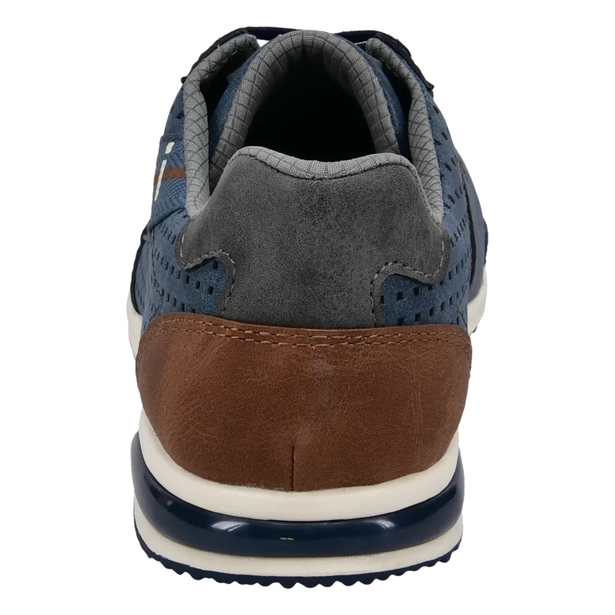 • der bequeme Sneaker der Gruppe Trevor in Dunkelblau mit cognacbraunem Akzent an der Ferse sorgt für Tragekomfort und Halt dank der bequemen Einlage mit Memory-Funktion und lässt sich leicht An- und Ausziehen durch die elastischen Schnürsenkel