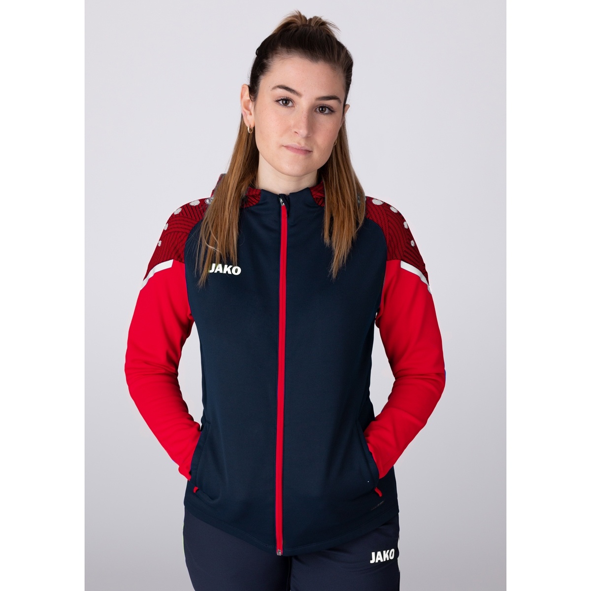 JAKO Kapuzenjacke Performance (Polyester-Fleece) marineblau/rot Damen