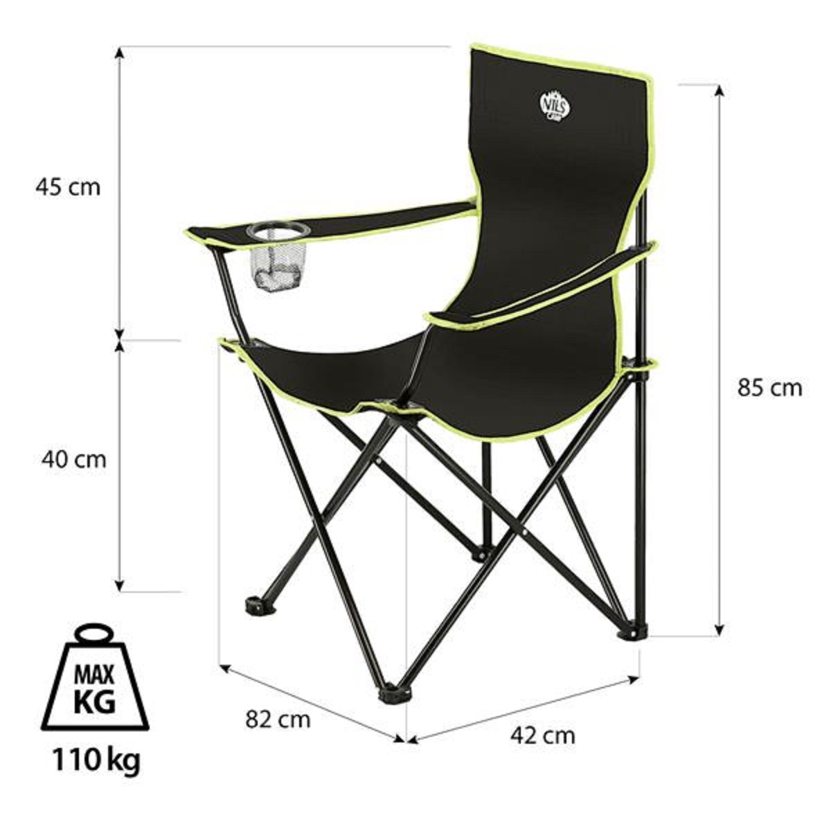 Nils Camp Campingstuhl NC3044 (Nutzergewicht max. 110 kg) schwarz/lime