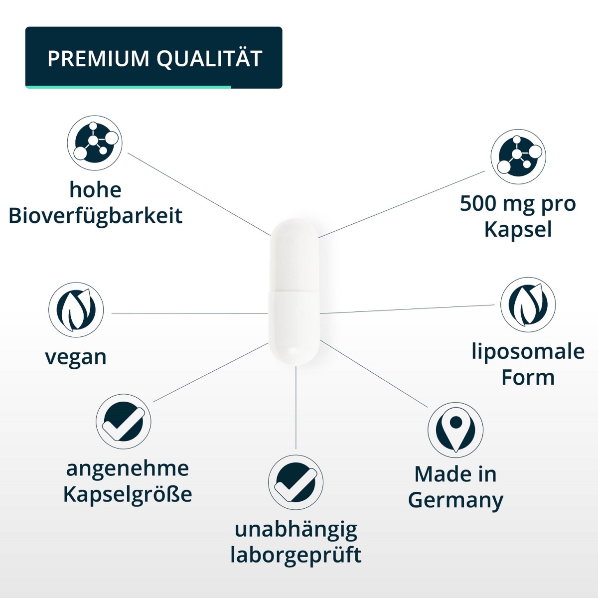 • unsere hochwertigen liposomalen Vitamin C Kapseln überzeugen durch eine hohe Dosierung von 1000 mg, eine optimale Bioverfügbarkeit und eine laborgeprüfte Qualität