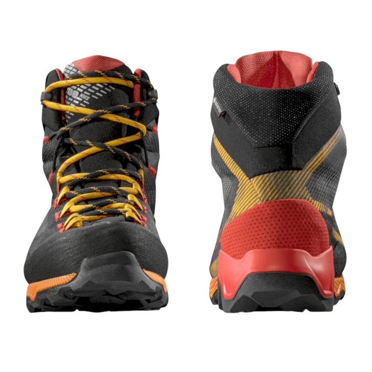 • außergewöhnliche Gehfähigkeit dank der innovativen Double Heel™ Fersenkonstruktion: die Geometrie mit sehr ausgeprägten doppelten hinteren Stollen erhöht die Bremswirkung beim Abstieg, ermöglicht ein sanfteres Abrollen und reduziert die Ermüdung derMuskelermüdung