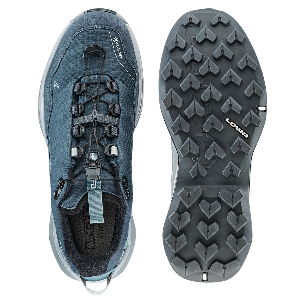 • das bewährte Zwischensohlensystem aus LOWA® DYNAPU® als auch das leichte, atmungsaktive Ripstop-Obermaterial gewährleisten ein sportliches Maß an Flexibilität - sodass der MADDOX PRO GTX LO SL Ws gediegenere Tempi als auch dynamische Fast-Hiking-Passagen problemlos meistert.