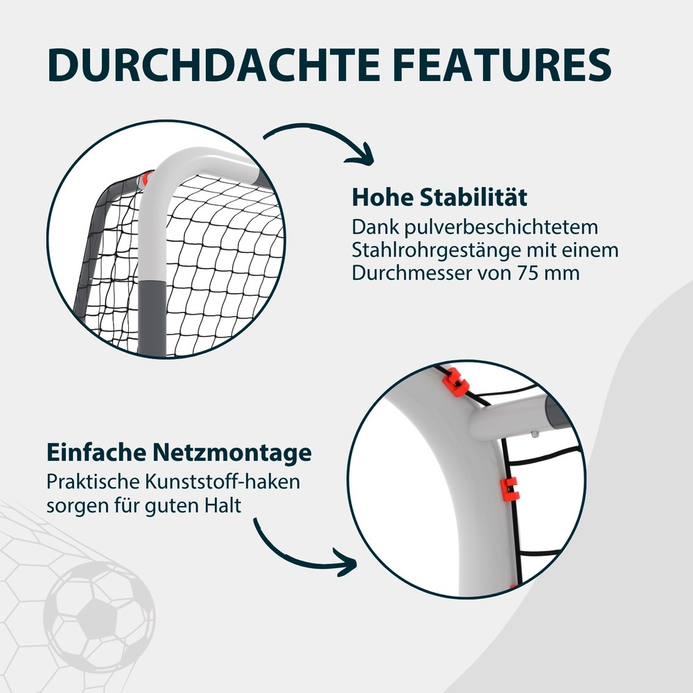 • dank der einfachen Montage ist das Tor schnell aufgebaut und sofort einsatzbereit