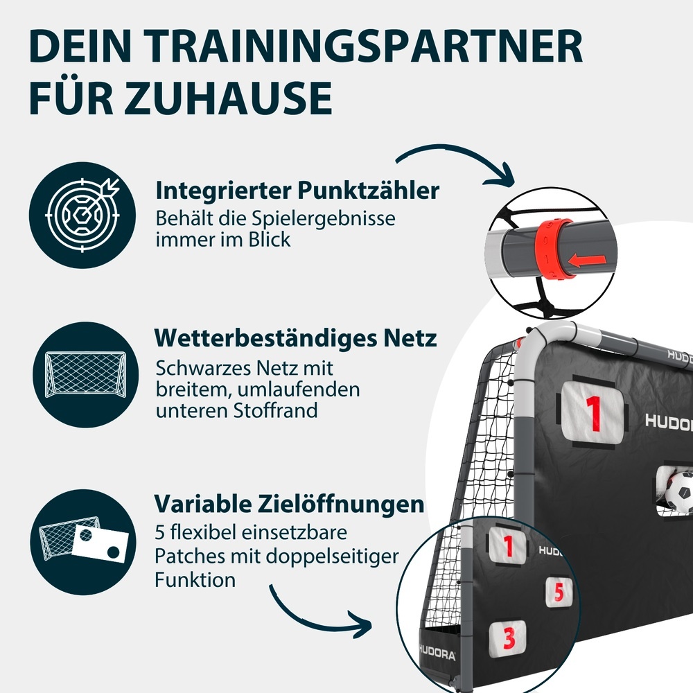 • Dank einzigartigem Targetshot mit variablen Torschusslöcher